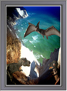 Kreidefelsenbild mit den 3 kleinen Menschen. |